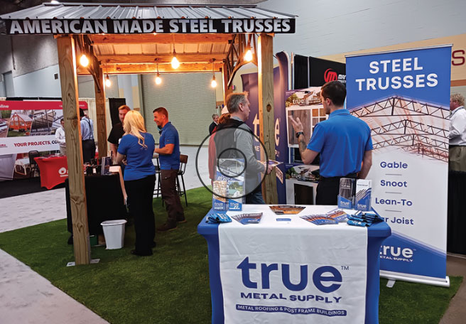 True Metal Supply, proveedor de estructuras de postes y techos metálicos, expuso en FBE por primera vez este año. El stand de la compañía presentó sus edificios de estructura de postes con armaduras de acero de cuerda paralela de Buffalo River Truss, así como su revestimiento de acero de tableros y listones con varios revestimientos de impresión de madera. “Las vigas de acero llamaron mucho la atención como estilo de construcción híbrido. Muchos asistentes a la feria quedaron intrigados por las capacidades de luz libre de 100' y la facilidad de instalación”. La compañía también informa que sus nuevos revestimientos con estampado de madera en su revestimiento de acero para tableros y listones atrajeron tanto a personas influyentes como a constructores de la industria. "Esperamos que estos componentes de construcción sigan creciendo en el transcurso de 2024".